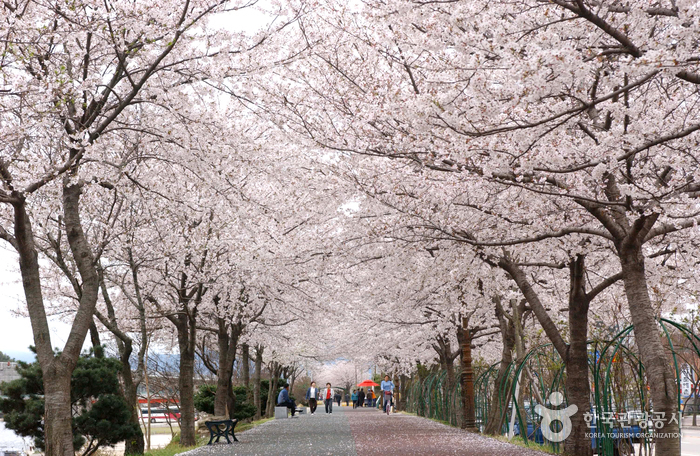 남원 시내를 가로지르는 요천을 따라 조성된 산책로로, 벚꽃이 만개하는 봄철에는 장관을 이룹니다. 광한루원과도 인접해 있어 자연스럽게 연계 코스로 즐기기 좋으며, 자전거나 도보 여행으로 여유롭게 걷기에 딱 좋습니다. 해질 무렵 풍경도 아름다워 연인이나 가족 단위로 많이 찾습니다.