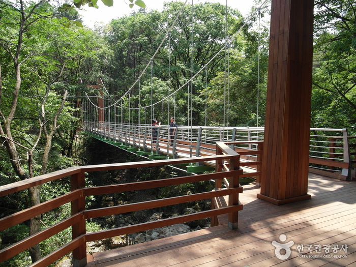원주를 대표하는 랜드마크인 소금산 출렁다리는 아찔한 스릴과 멋진 풍경을 동시에 느낄 수 있는 곳입니다. 길이 약 200m에 달하는 다리를 건너면 탁 트인 원주의 산세를 한눈에 조망할 수 있어요. 인근에는 모노레일도 있어 이동이 편리합니다.