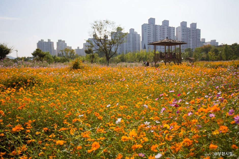 부천 시민의 쉼터로 불리는 대형 공원입니다. 봄철 벚꽃길과 가을의 단풍 산책로가 특히 아름답고, 다양한 운동시설과 조경이 잘 어우러져 있어 평일 오후에도 많은 시민들이 찾는 장소입니다.