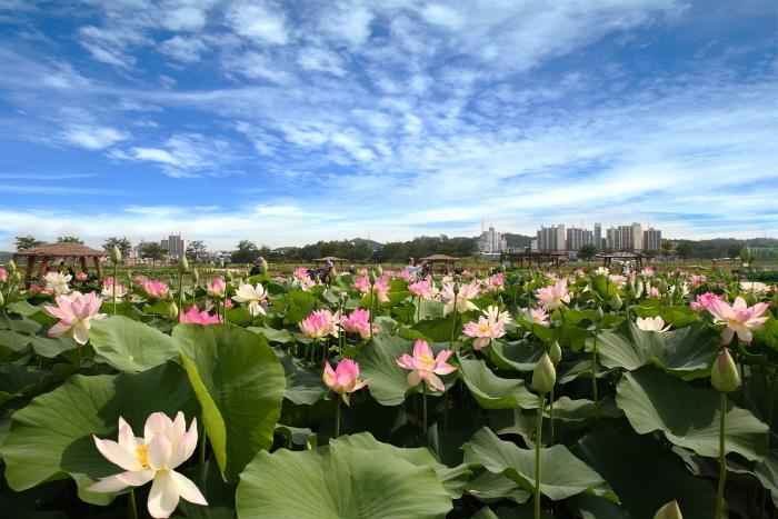 넓은 연못을 따라 다채로운 연꽃이 흐드러지게 피어나는 공간으로, 사진 찍기 좋은 명소입니다. 특히 여름철에는 연꽃축제도 개최되어 더욱 화려한 분위기를 자아냅니다. 테마별 정원도 잘 꾸며져 있어 여유로운 시간을 보내기 좋습니다.