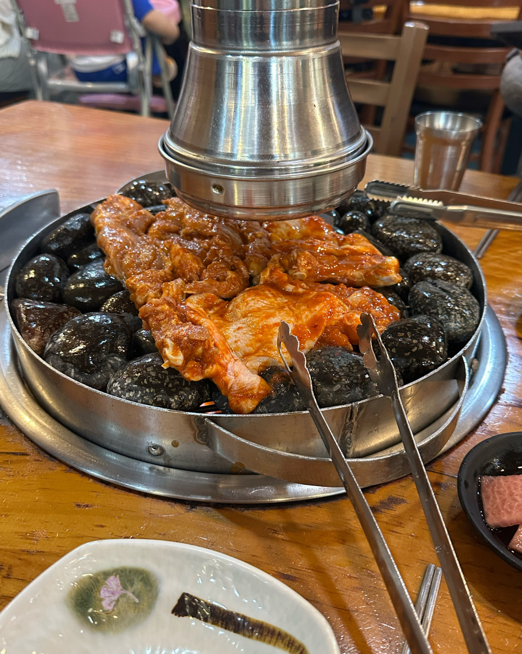 조약돌 위에서 닭갈비를 구워 먹는 이색적인 방식이 특징인 곳이에요. 기름기는 쏙 빠지고 고기는 촉촉하게 익어 더 맛있게 즐길 수 있어요. 양념이 골고루 배어 있고, 돌과 고기가 타지 않도록 자주 뒤집어주는 것이 포인트예요. 도토리 국수, 도토리 전 같은 메뉴도 함께 즐기면 더 알차고요. 야외 테라스는 반려동물 동반도 가능해서 가족 단위 방문객에게도 인기예요.