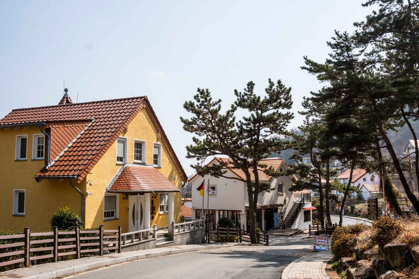 독일풍 건물들이 언덕 위에 줄지어 있는 이곳은 사진 찍기 좋은 명소로 인기가 많아요. 푸른 남해 바다를 배경으로 이국적인 풍경이 펼쳐지며, 전망대에 올라가면 탁 트인 풍경이 압권이에요.