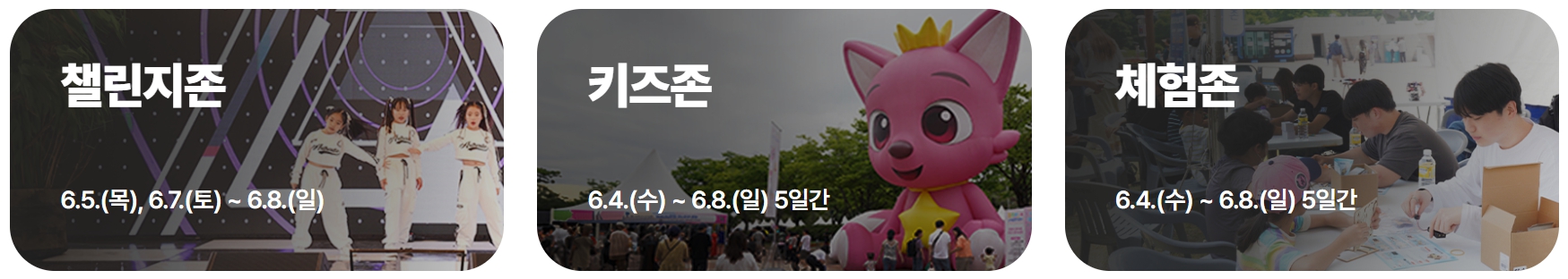 행사장은 여러 테마 존으로 나뉘어 관람객의 흥미를 끄는 체험을 선사합니다.