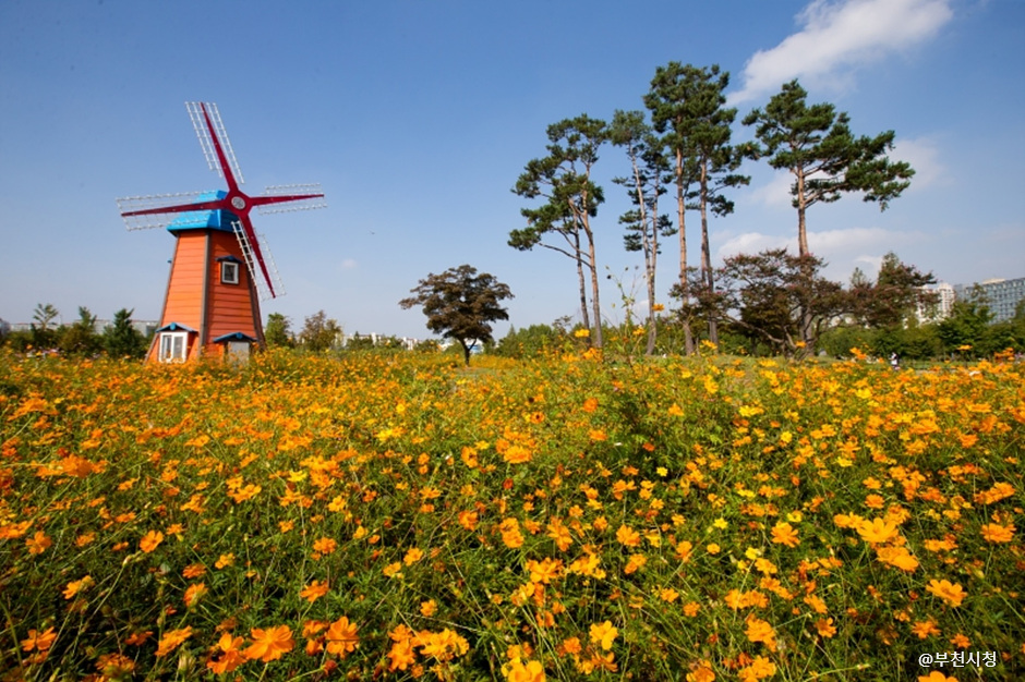 부천 시민의 쉼터로 불리는 대형 공원입니다. 봄철 벚꽃길과 가을의 단풍 산책로가 특히 아름답고, 다양한 운동시설과 조경이 잘 어우러져 있어 평일 오후에도 많은 시민들이 찾는 장소입니다.