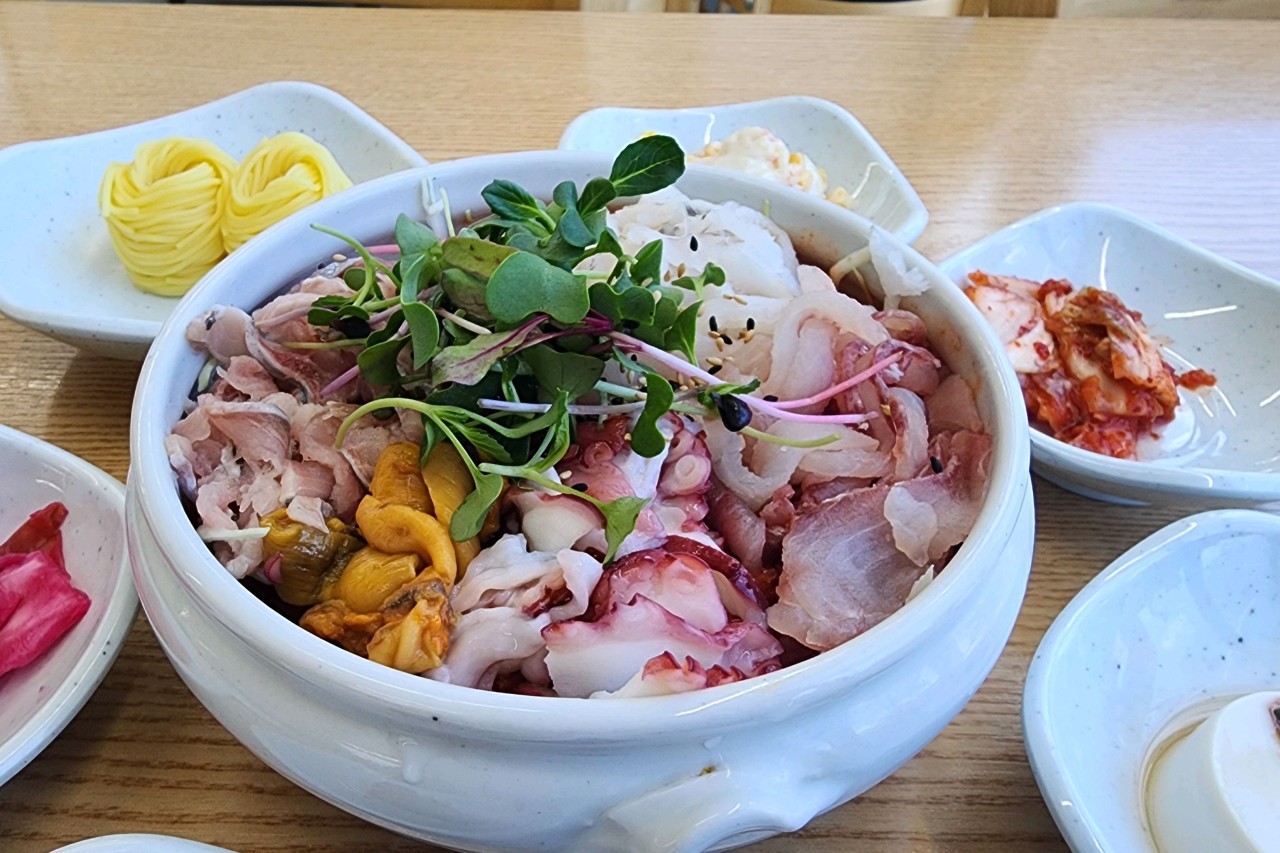 바람꽃해녀마을은 작지만 정갈한 분위기의 해산물 맛집으로, 해녀가 직접 잡은 재료를 사용해 신선함이 다릅니다. 전복뚝배기와 멍게비빔밥이 대표 메뉴이며, 특히 전복뚝배기는 국물 맛이 진하고 깊어 감동적인 맛을 선사해요. 설악산 근처라 등산 후 방문하기도 좋아요.