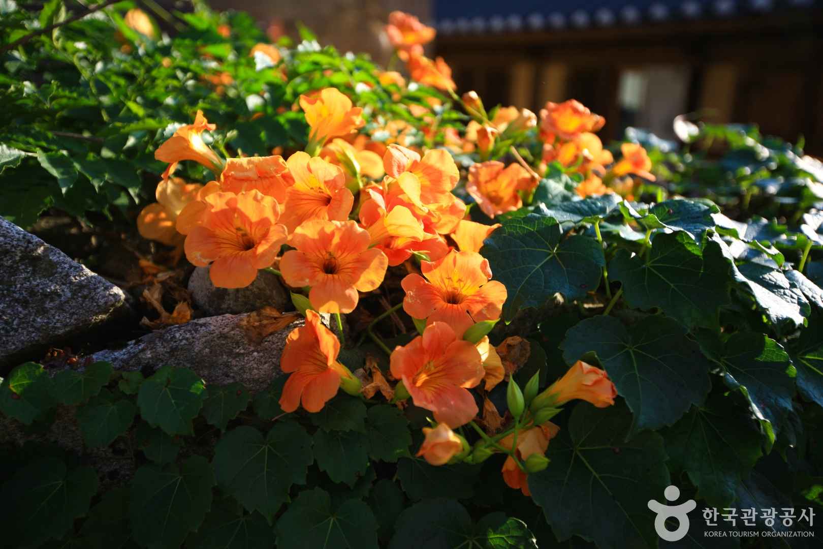 푸른 기와지붕 위로 주황빛 능소화가 흐드러지게 피어나며 돌담길을 물들인다. 충남 아산 외암민속마을은 조선 양반가의 고즈넉한 풍경과 함께 여름이면 활짝 피어나는 능소화로 유명하다. 전통이 살아 숨 쉬는 마을 풍경 속에서 능소화를 배경으로 사진을 남기려는 이들이 매년 이곳을 찾는다. 고택과 꽃길이 만들어내는 독특한 정취 덕분에 외암마을은 여름철 꼭 가봐야 할 국내 여행지로 손꼽히고 있다.