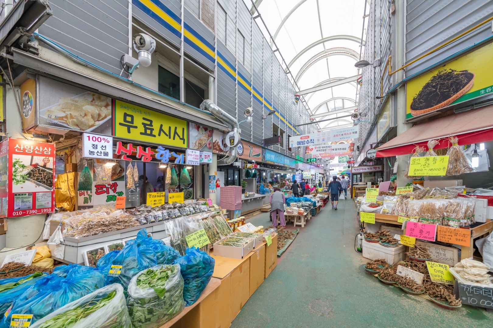 정선 하면 빠질 수 없는 곳이죠. 5일마다 열리는 이 장터는 강원도 특유의 투박한 정겨움이 살아 있어요. 산나물, 약초, 수공예품 등 다양한 지역 특산물을 구경하고 맛보는 재미가 쏠쏠합니다. 특히 강원도식 메밀전병과 콧등치기국수는 꼭 맛봐야 할 별미입니다.