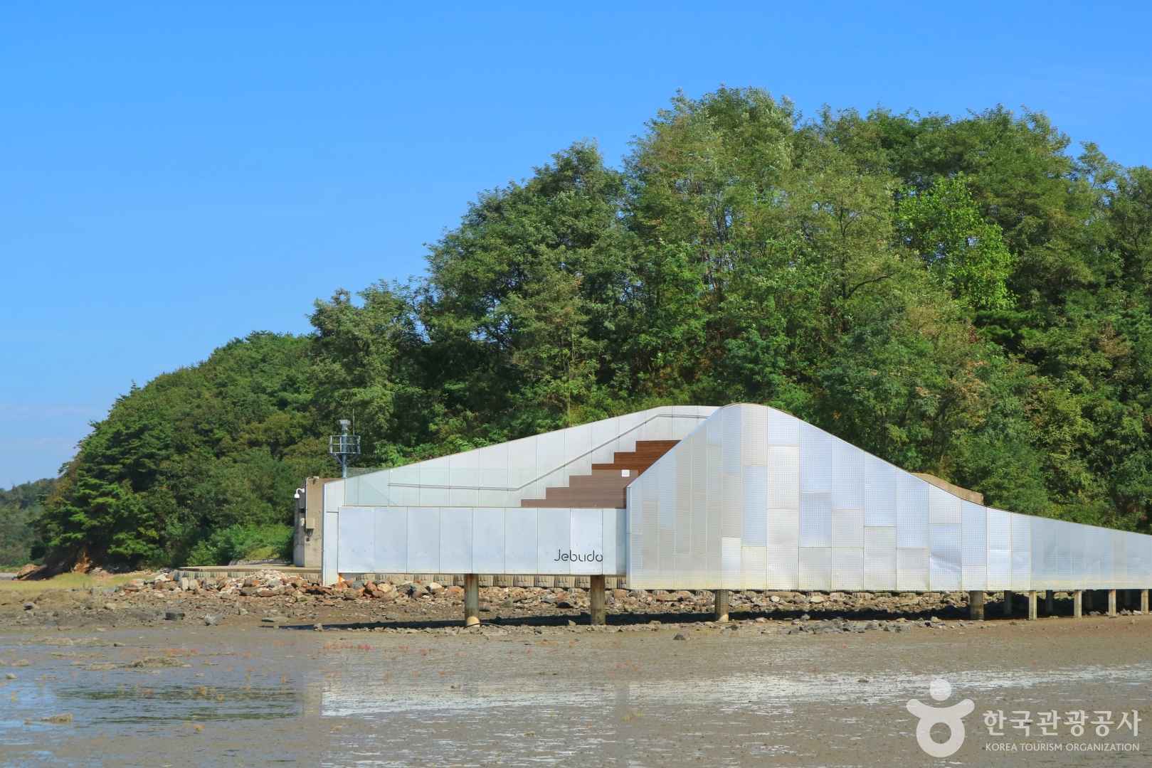 바닷길이 열리고 닫히는 제부도 입구에는 바다 위를 걷는 듯한 스릴 넘치는 워터워크가 자리해 있습니다. 밀물 때는 실제로 바다 위를 걷는 느낌을, 썰물 때는 끝없이 펼쳐진 갯벌 풍경을 감상할 수 있어 다양한 분위기를 만끽할 수 있는 공간입니다. 특히 석양이 지는 시간대에 찾으면 황금빛 노을과 제부도의 실루엣이 어우러져 더욱 낭만적인 장면을 경험할 수 있습니다.