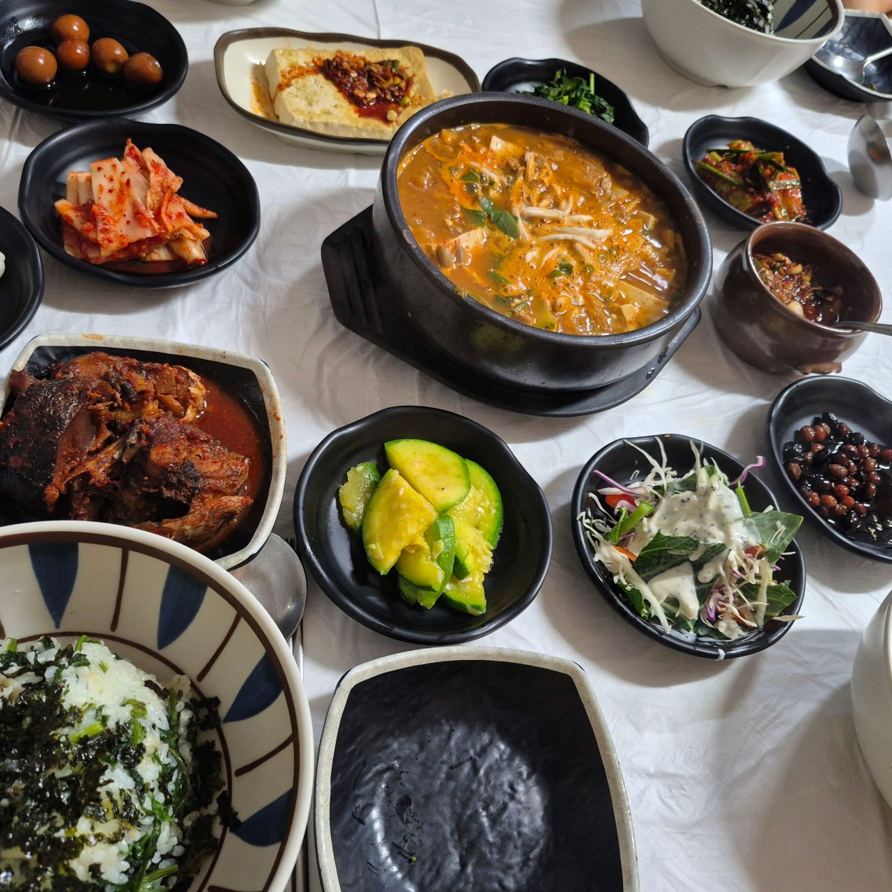 의림지 바로 옆에 위치한 이 식당은 한정식 구성이 풍성해 식사 시간이 즐거워지는 곳이에요. 청국장, 보리굴비, 간장게장 등 다양한 메뉴가 돌솥밥과 함께 한상 가득 차려져 나와요. 반찬은 셀프바에서 자유롭게 가져다 먹을 수 있어 더 만족스러워요.