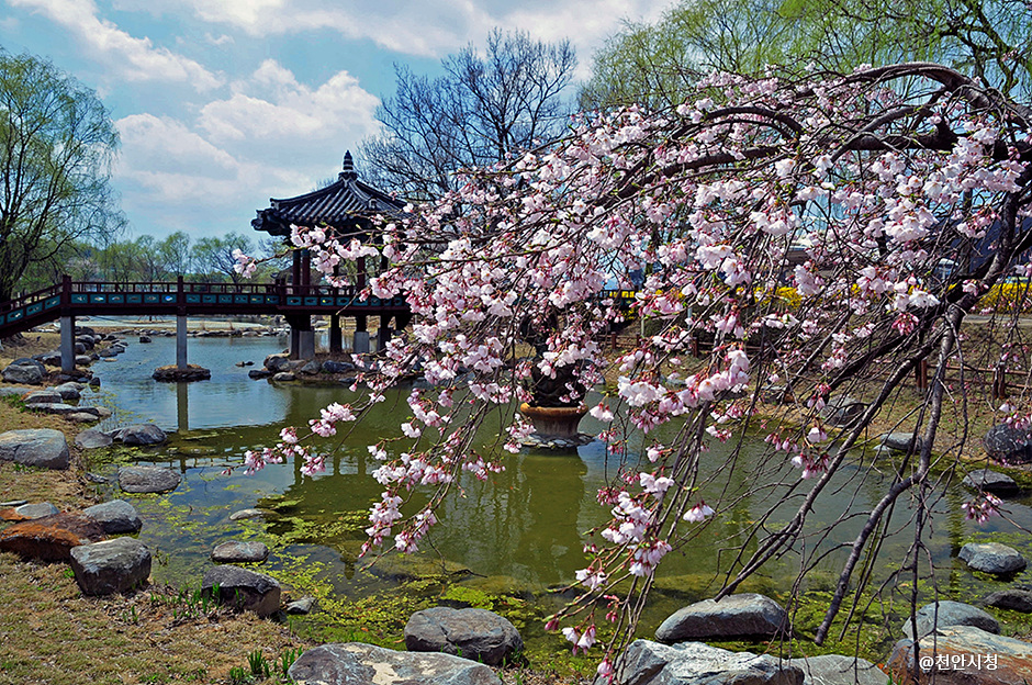 조선시대부터 전국 교통의 요지였던 천안삼거리를 기념하는 공원으로, 걷기 좋은 산책로와 문화시설이 어우러진 힐링 공간이에요. 봄과 가을에 열리는 지역 축제도 매력적이에요.