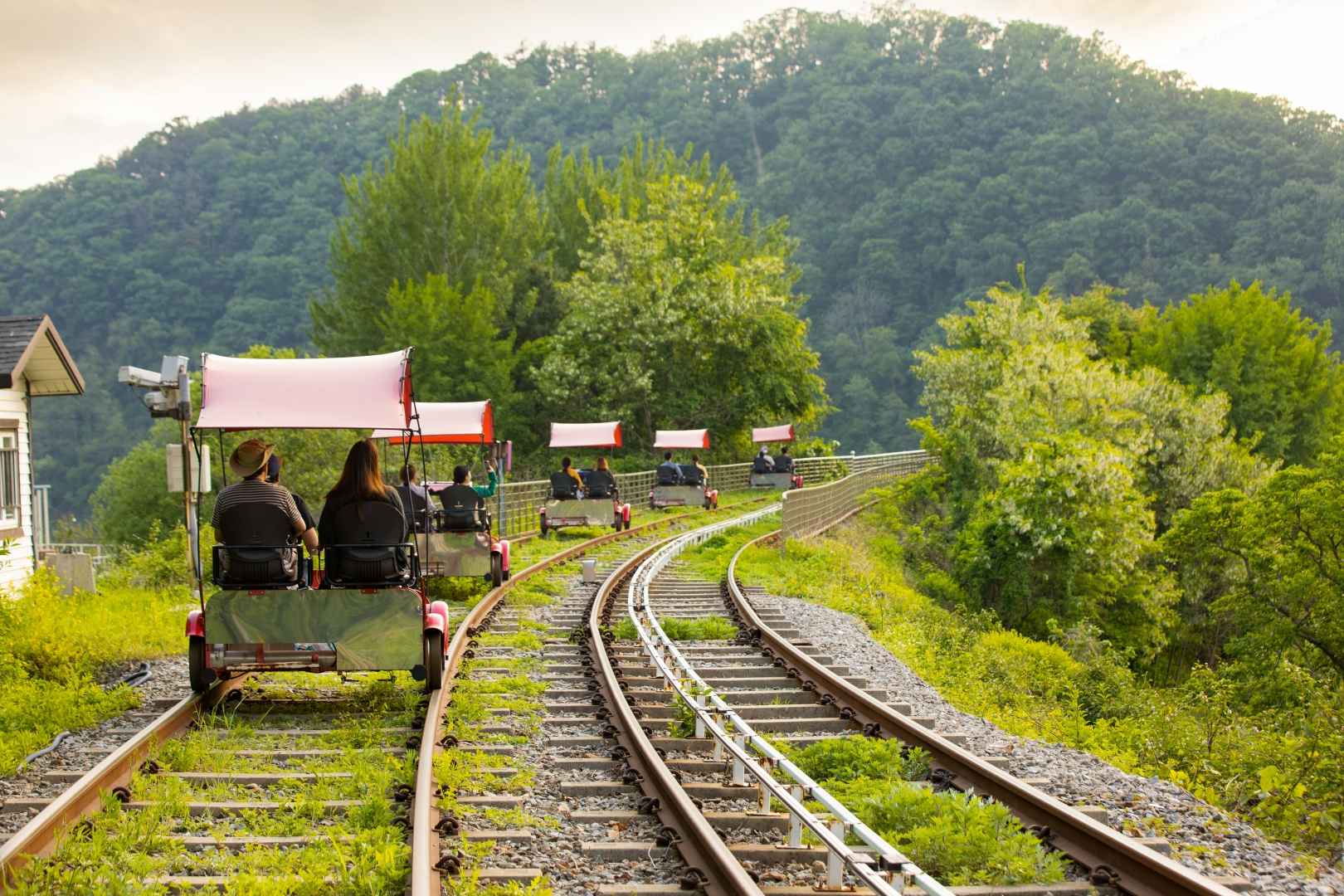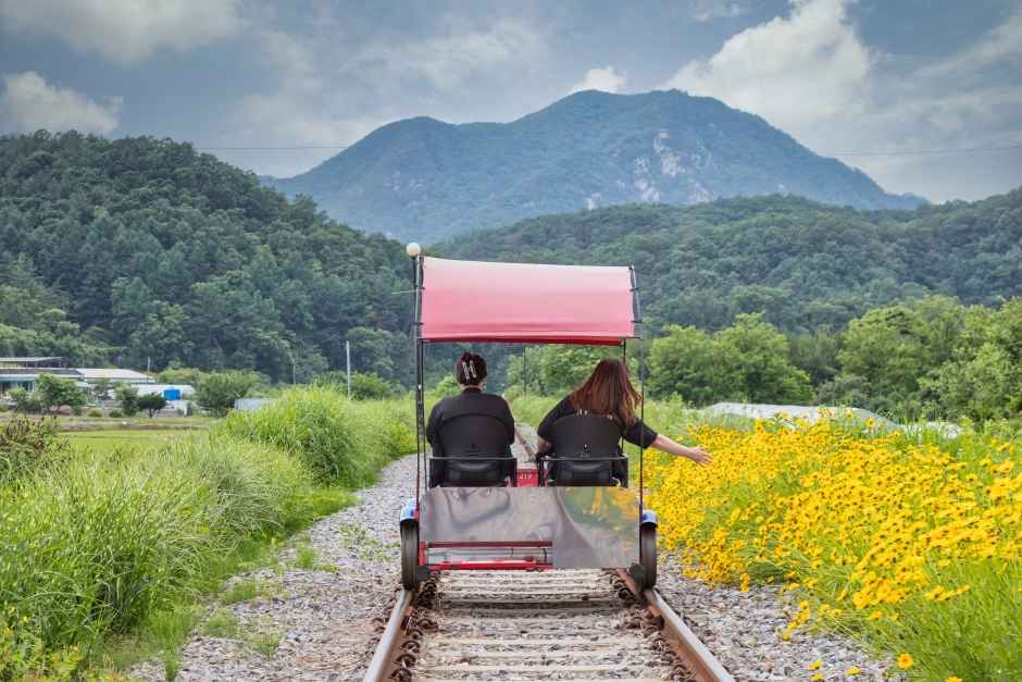 옛 철길을 따라 레일바이크를 타고 달리는 이색 체험이 가능한 곳이에요. 강변을 따라 펼쳐지는 풍경을 즐기며 시원한 바람을 맞을 수 있어요. 코스도 다양하게 마련되어 있어 취향에 따라 선택할 수 있어요.